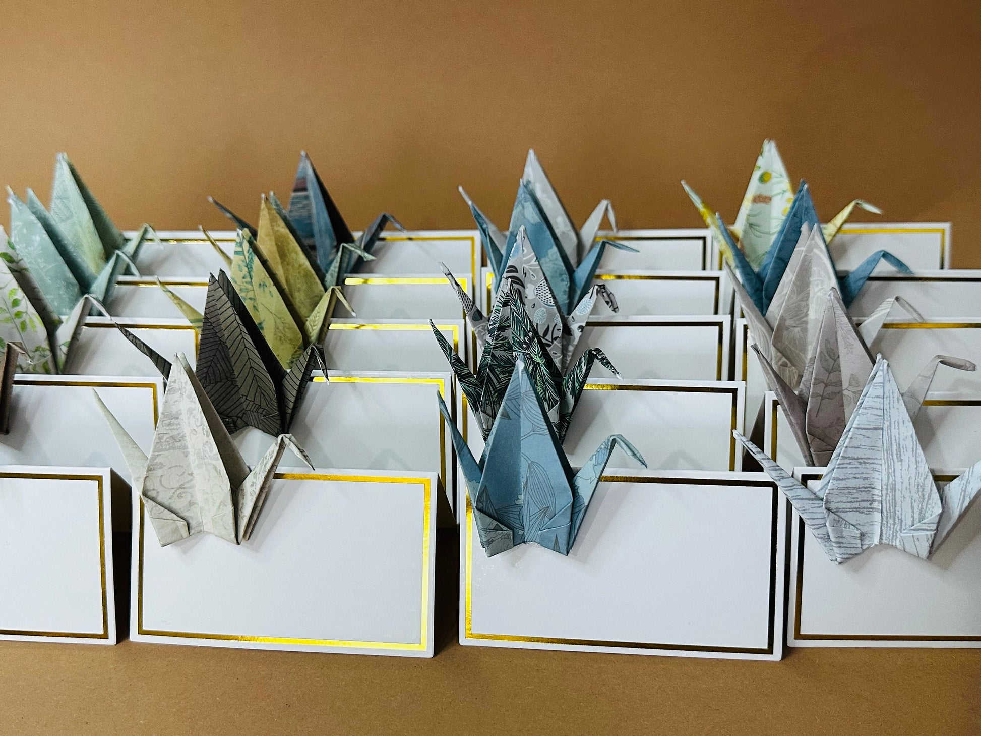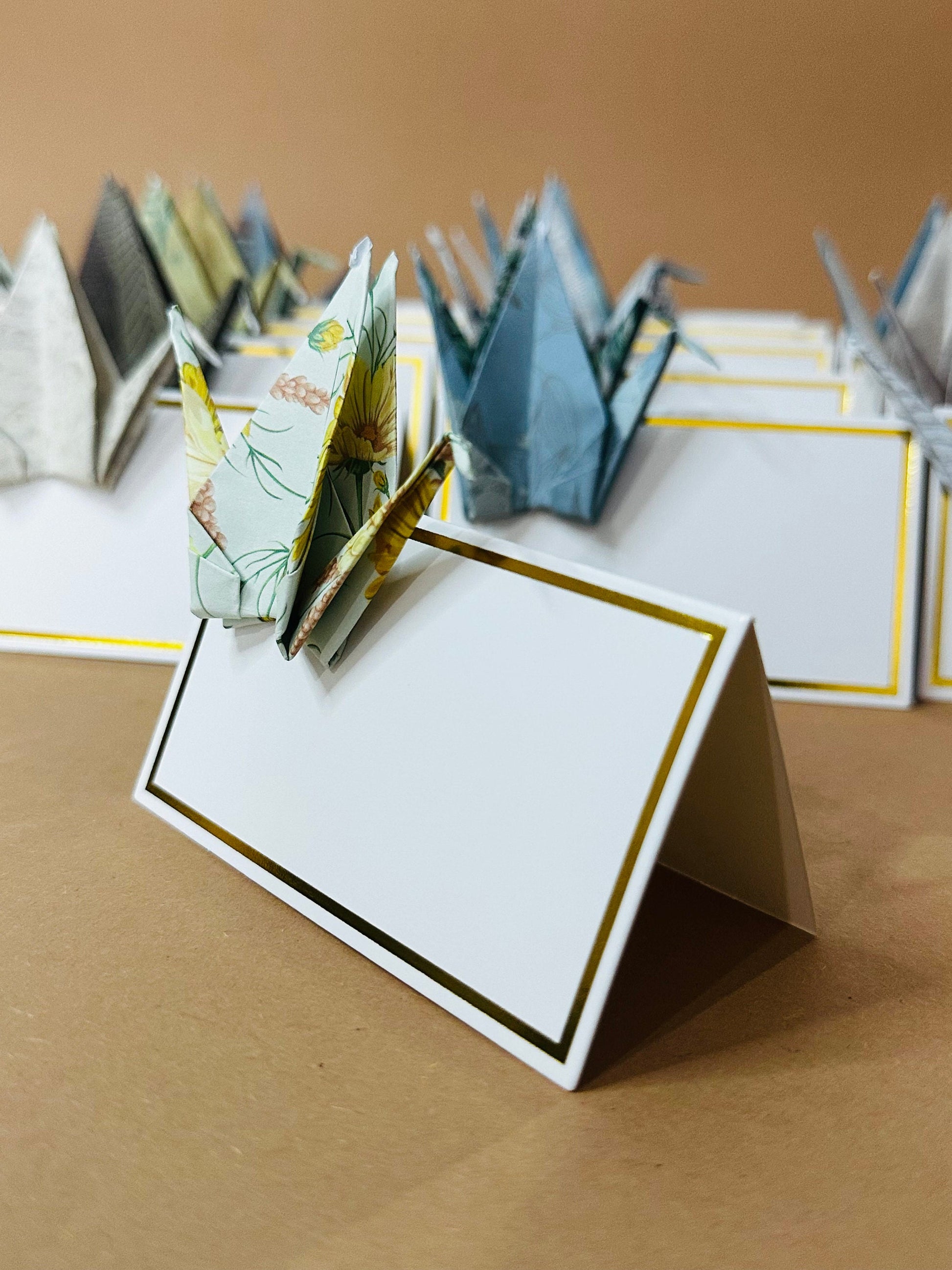 Origami place cards set of 10 | Japanese Chiyogami Nature Crane Table Decoration Handmade | Place card wedding card christening birthday party