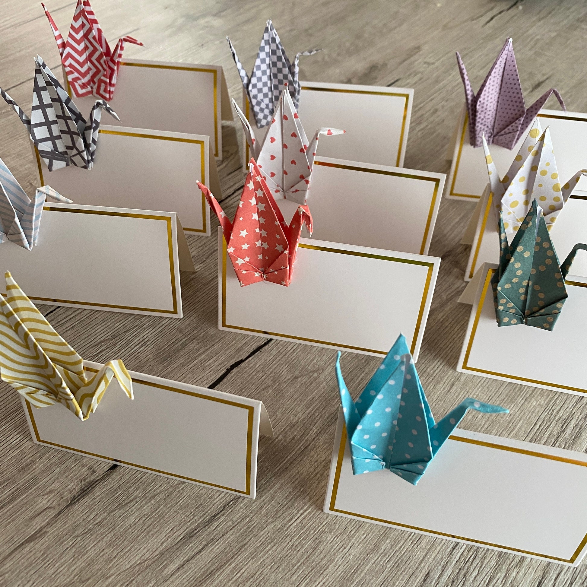 Origami Tischkarten 10er Set | Japanischer geometrische Muster Kranich Tisch Deko Handmade | Platzkarte Hochzeitskarte Taufe Geburtstag