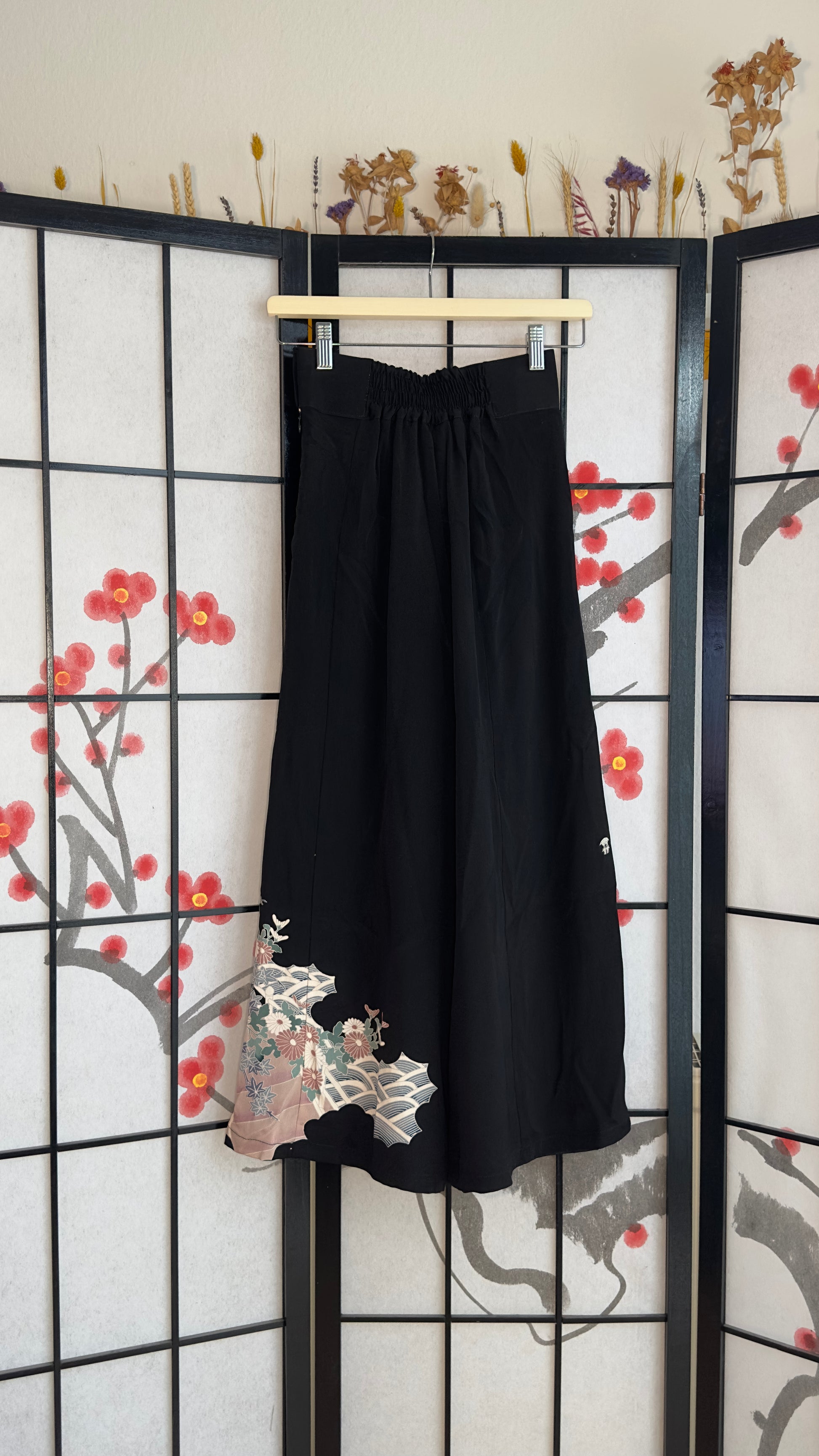 Palazzo Pants (Waist 63-71 cm) Upcycled Kimono Black