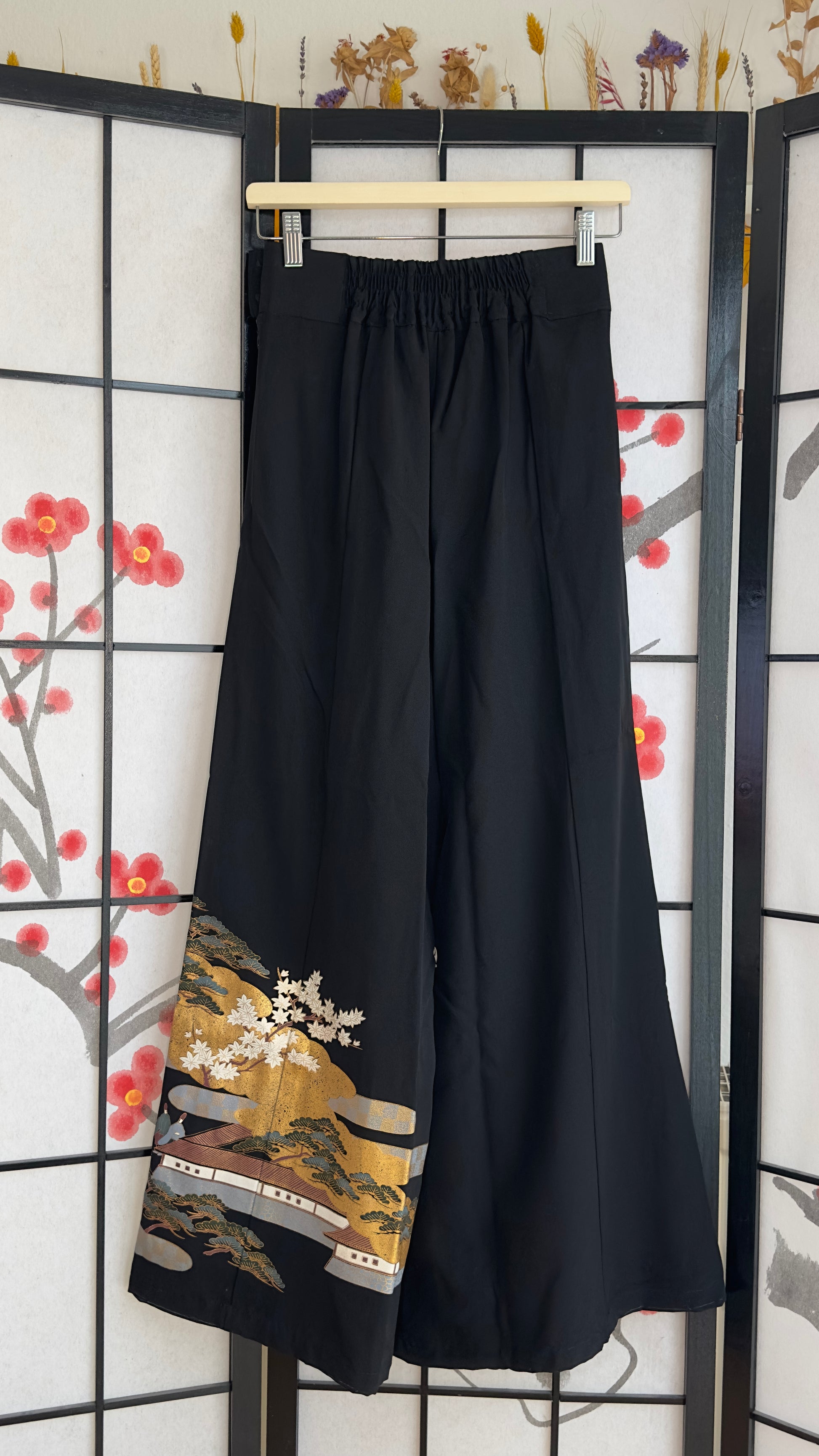 Palazzo Pants (Waist 63-71 cm) Upcycled Kimono Black