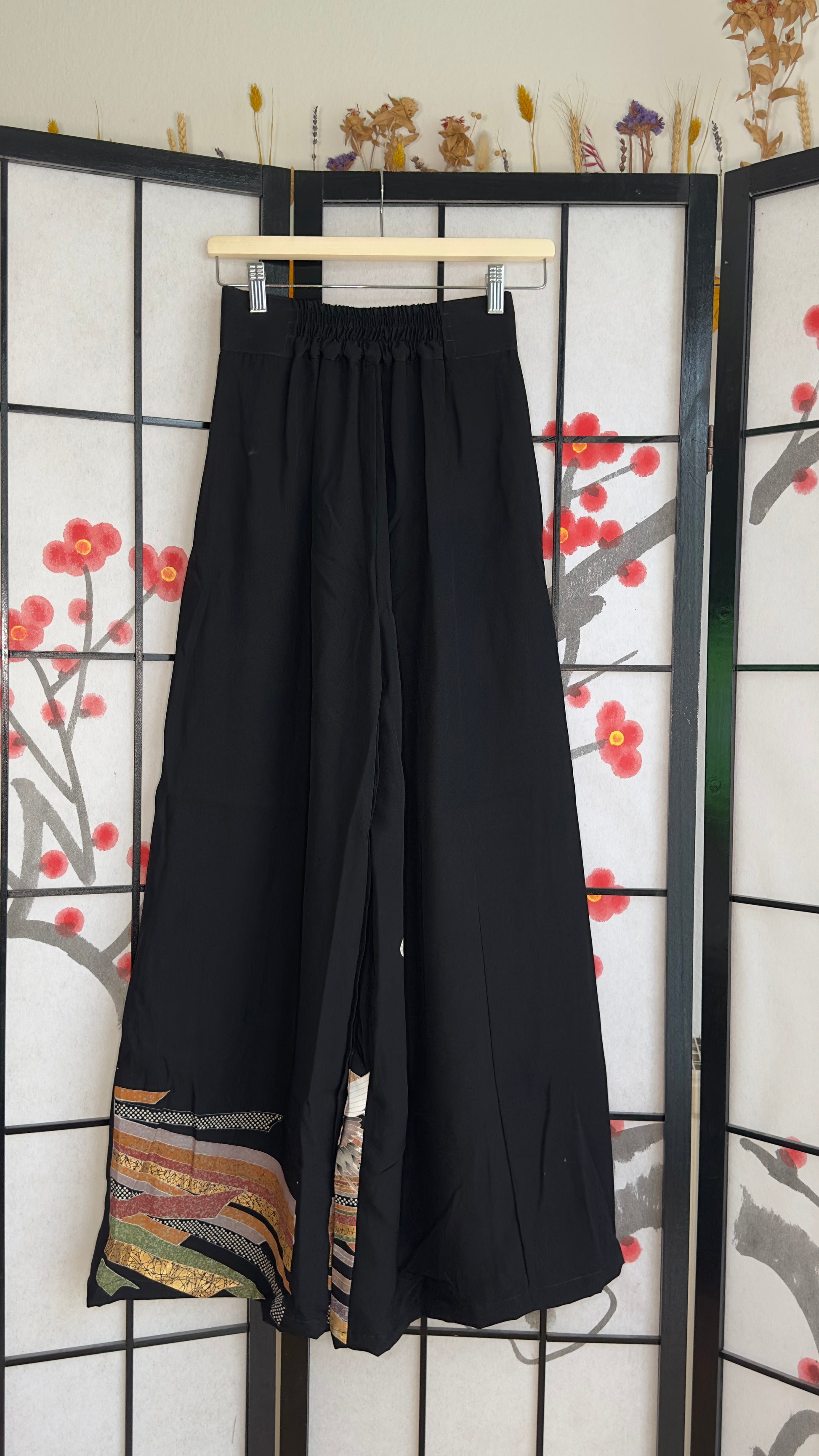 Palazzo Pants (Waist 58-66 cm) Upcycled Kimono Black