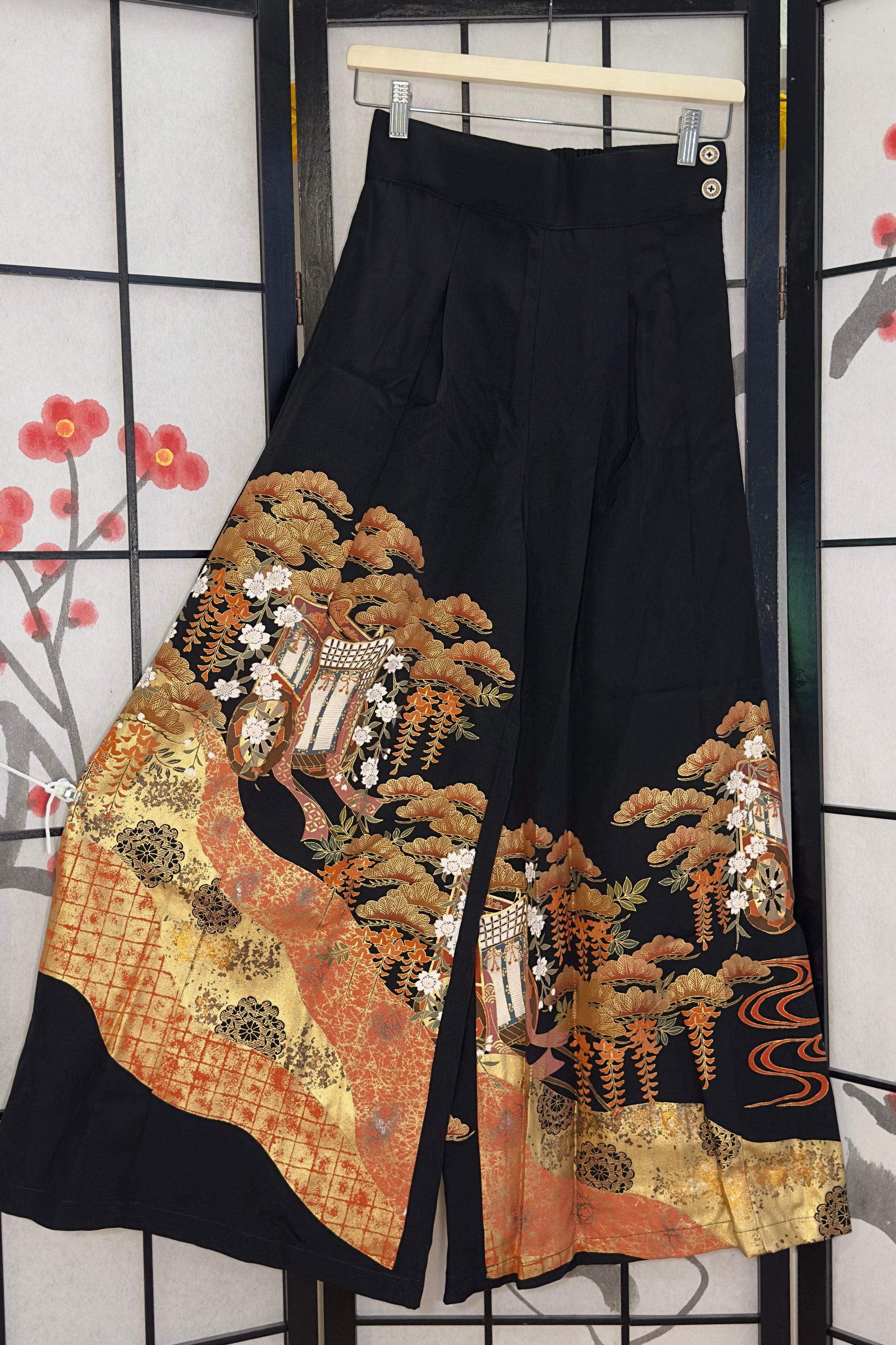 Palazzo Pants (Waist 66-73 cm) Upcycled Kimono Black