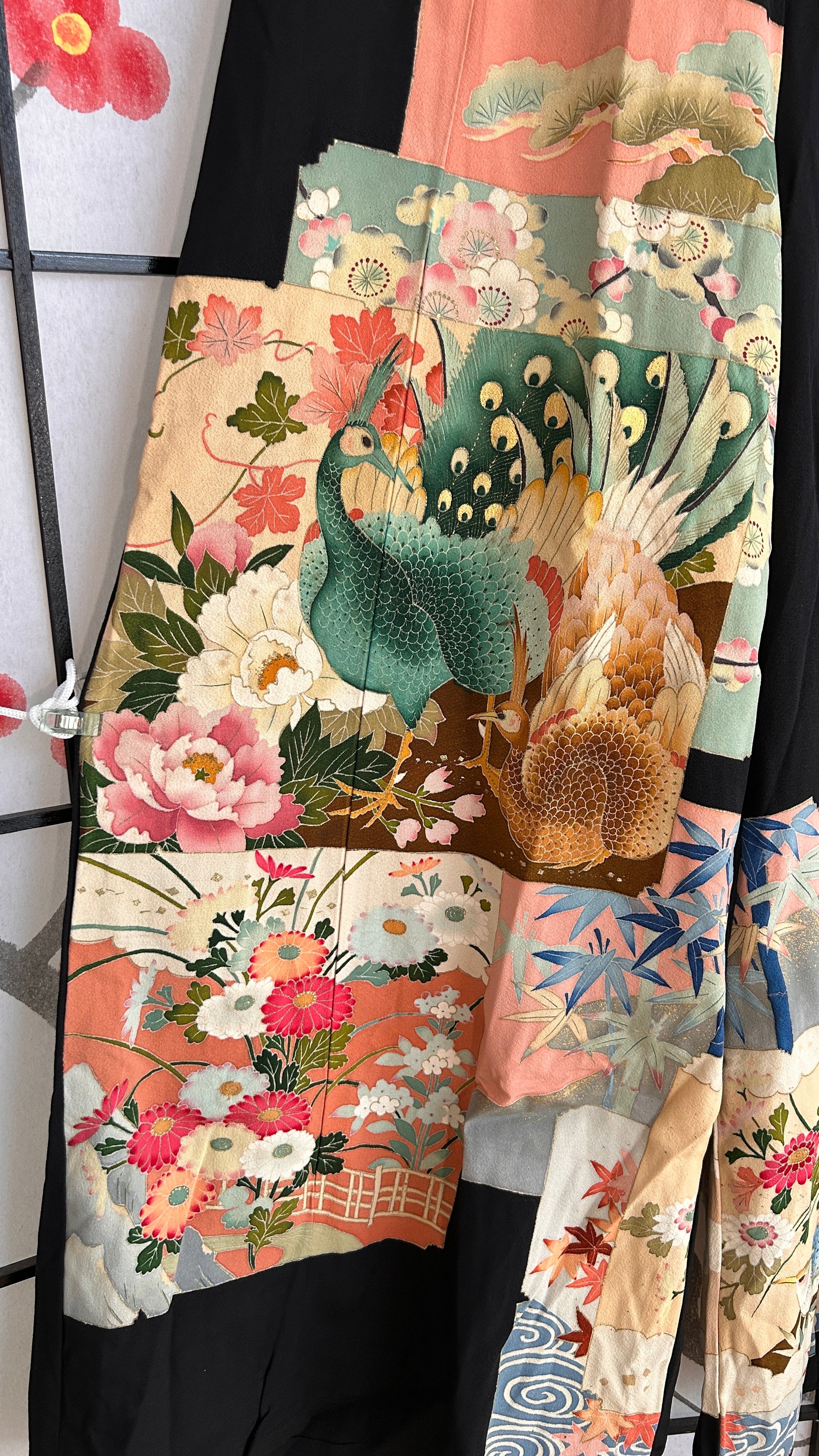 Upcycled kimonos occupy an elevated price tier, showcasing exquisite hand-painted artistry by master artisans and distinguished either by pristine contemporary craftsmanship or with a well-documented history of ownership by distinguished members of high society.
