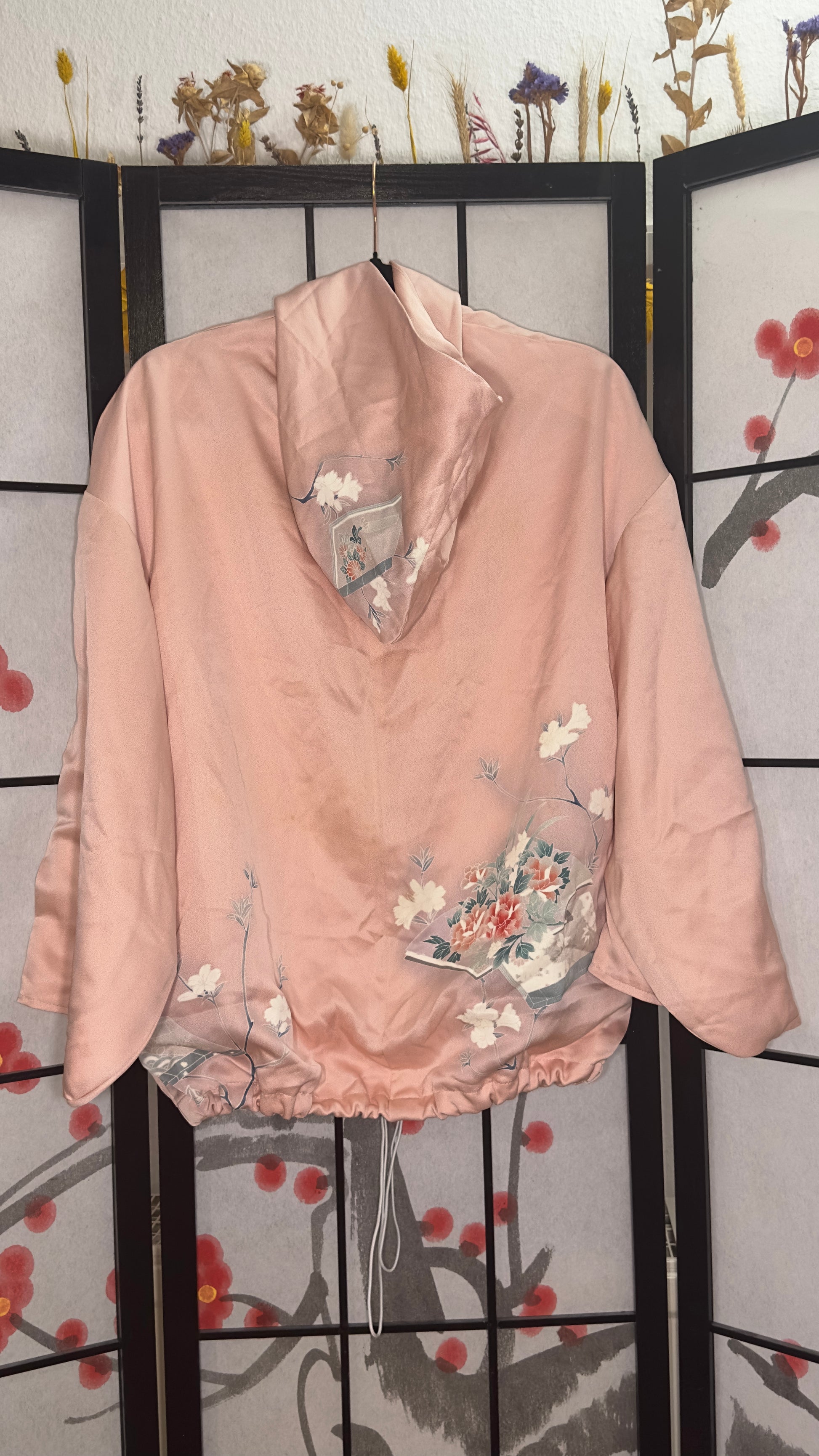 Upcycled Kimono Regular Hoodie Pink